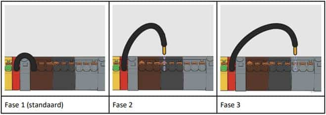 Standaard wordt de fase waarop de fase selector is aangesloten gebruikt als meterkast fase.