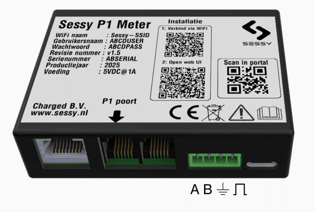 De Sessy P1 meter beschikt over een modbus (RS485) interface.
